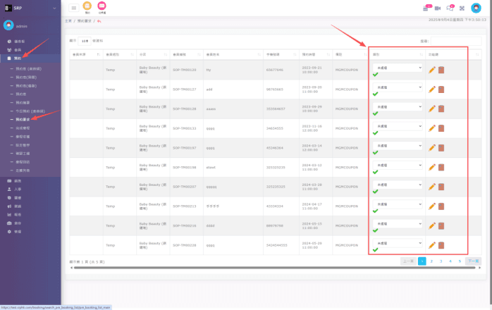 成功導入會員資料後,打開預約->預約要求,剛才導入的資料會在這裡出現,可以在這裡操作首次預約