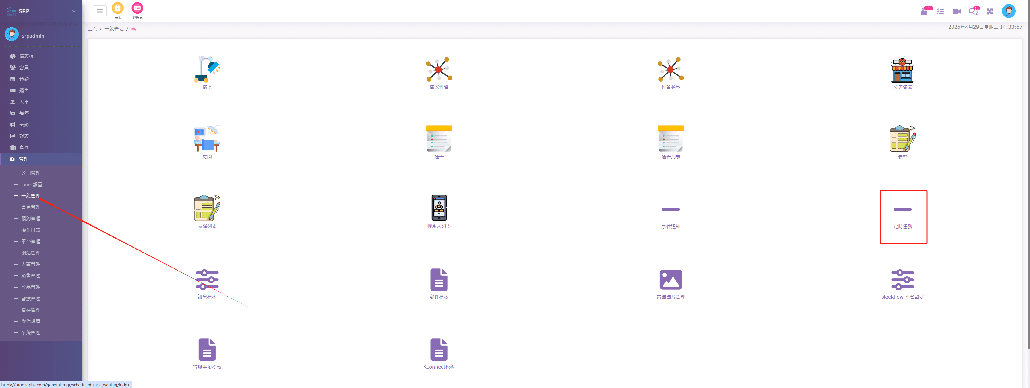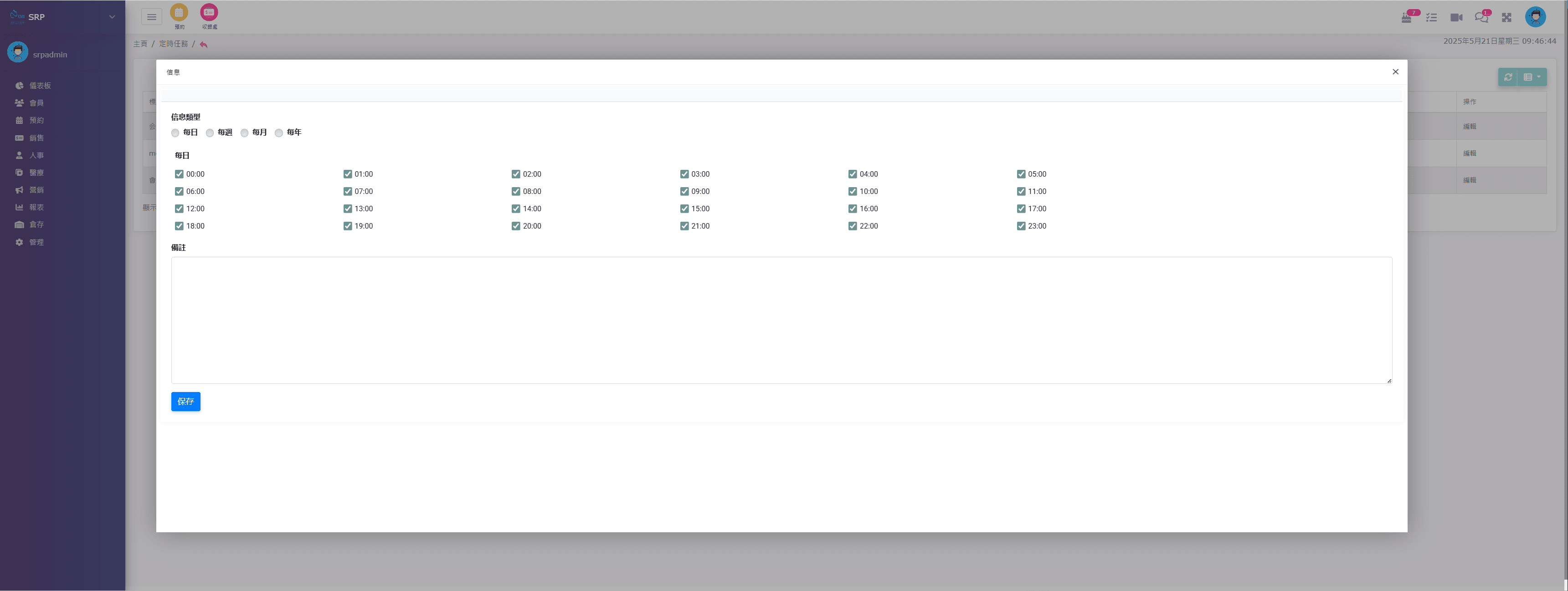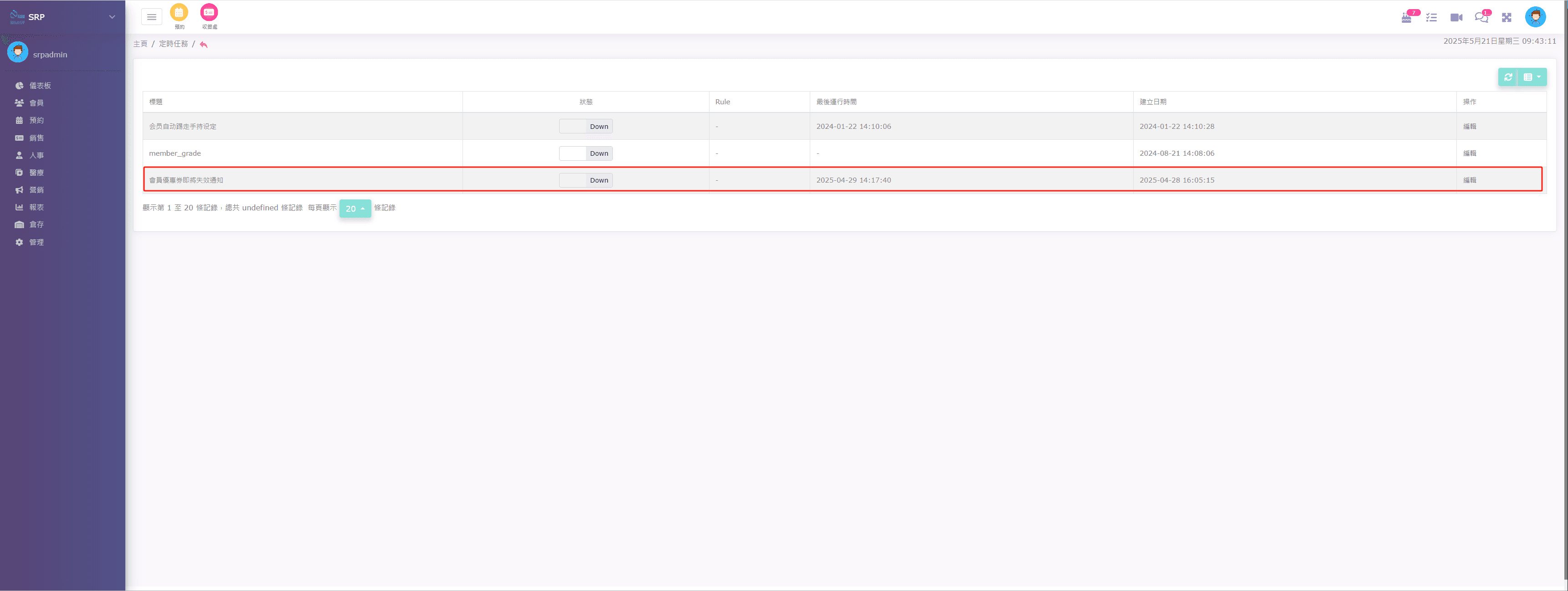 需要先在管理-系統管理-權限設定->管理裡面找到定時任務,之後在管理-一般管理-定時任務可以編輯開關