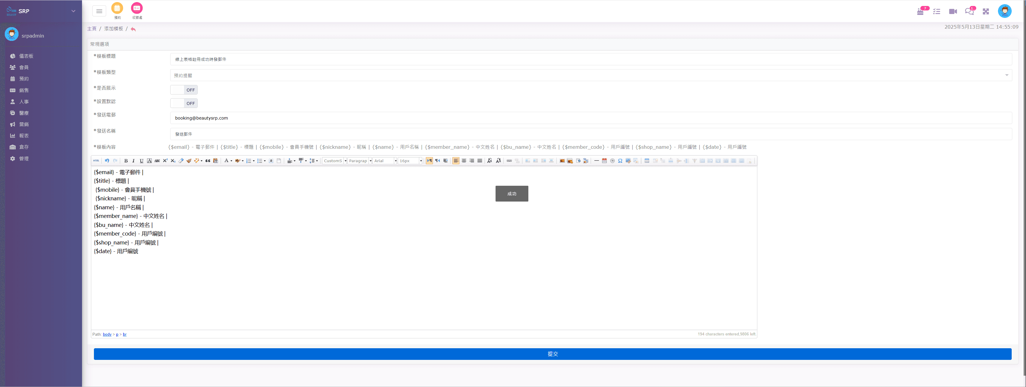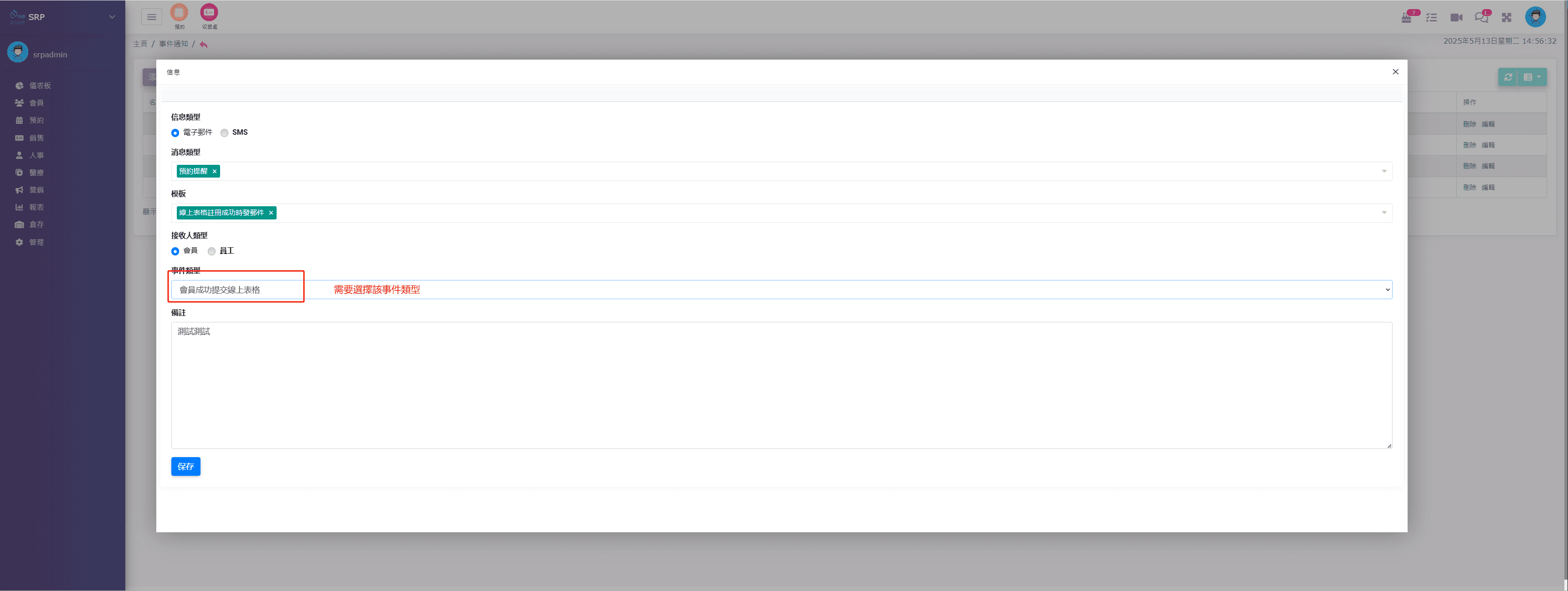 之後在管理-一般管理-事件通知,添加一個事件類型為會員成功提交線上表格的類型