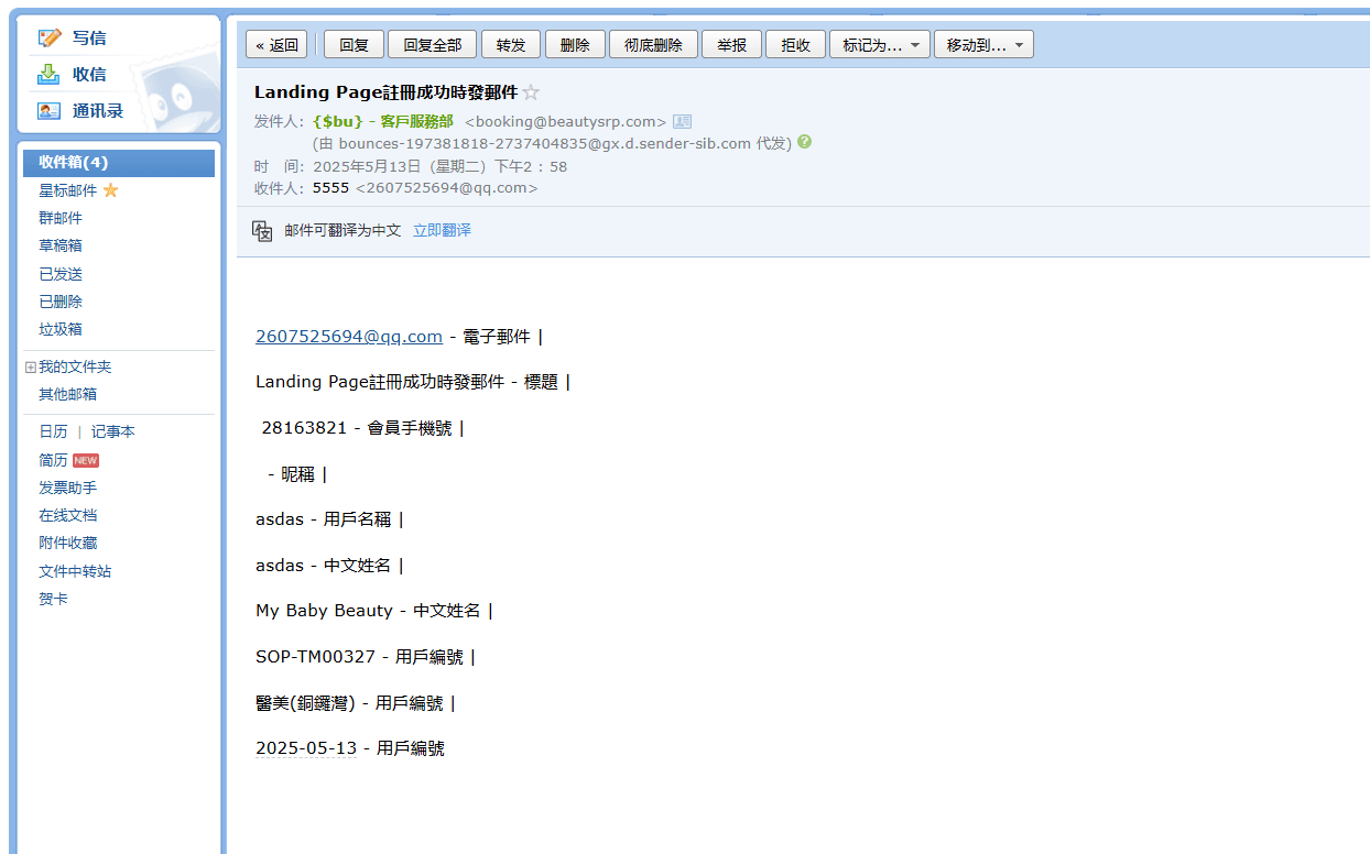 線上表格填寫完郵箱之後,郵箱會收取到信息